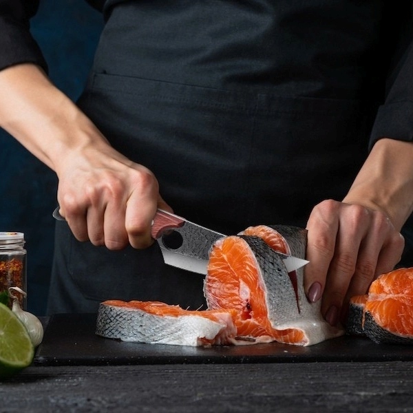 Či ste domáci kuchár alebo profesionál, HISUI zlepší každú prípravu jedla. Od krájania zeleniny až po filetovanie mäsa, jeho ergonomický dizajn a vyvážená hmotnosť umožňujú hladké a jednoduché rezanie, ktoré každú úlolouhu mení na umenie.